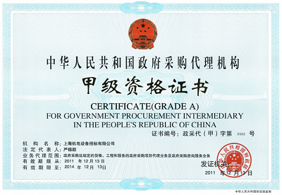 國家財(cái)政部授予的首批《政府采購代理機(jī)構(gòu)甲級(jí)資格證書》,以及國家發(fā)改委授予的首批《中央投資項(xiàng)目招標(biāo)代理機(jī)構(gòu)甲級(jí)資格證書》。